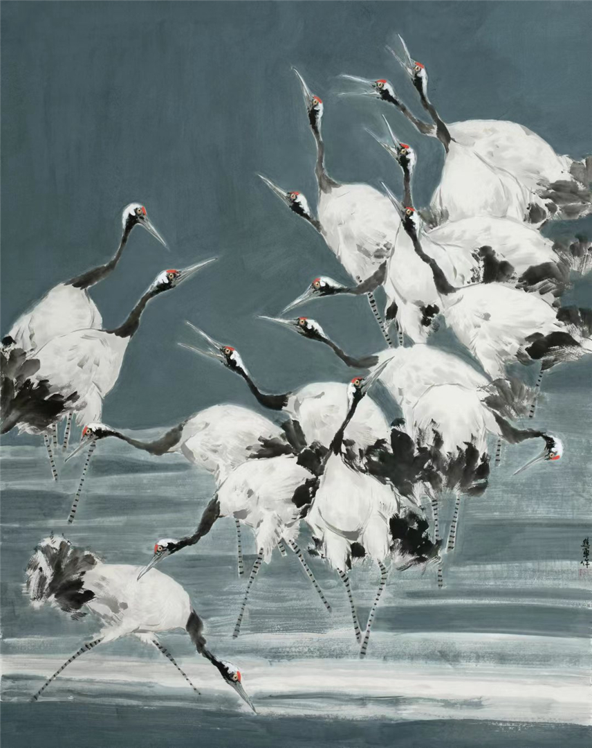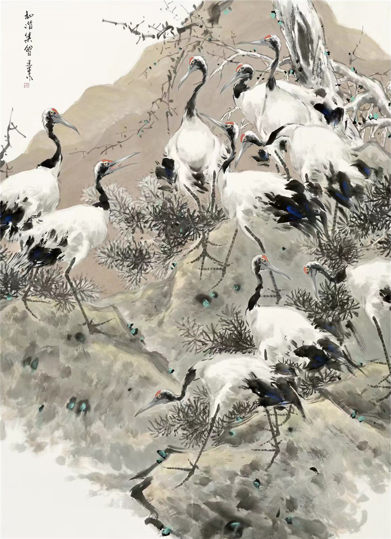 2021年8月,邢近君原创《百鹤图》被《金陵百家》中国画画展组委会介绍给英国驻华大使私人收藏。